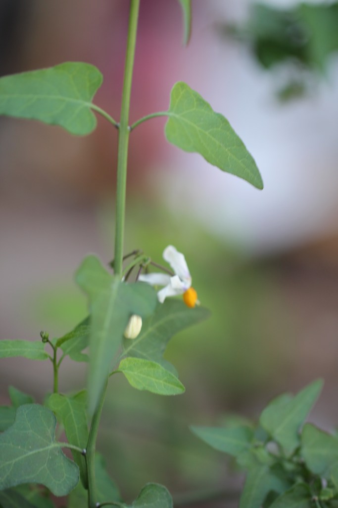 Plant Description: Perennial to 1.7 m or longer, the stems erect to spreading, mostly hairless. Leaves triangular, 1.5-6 cm long, alternate, often lobed. Spreading plant with vine-like stems Flowers in cymes, the corolla 15-20 mm wide, white or rarely purplish. Berries red, poisonous.