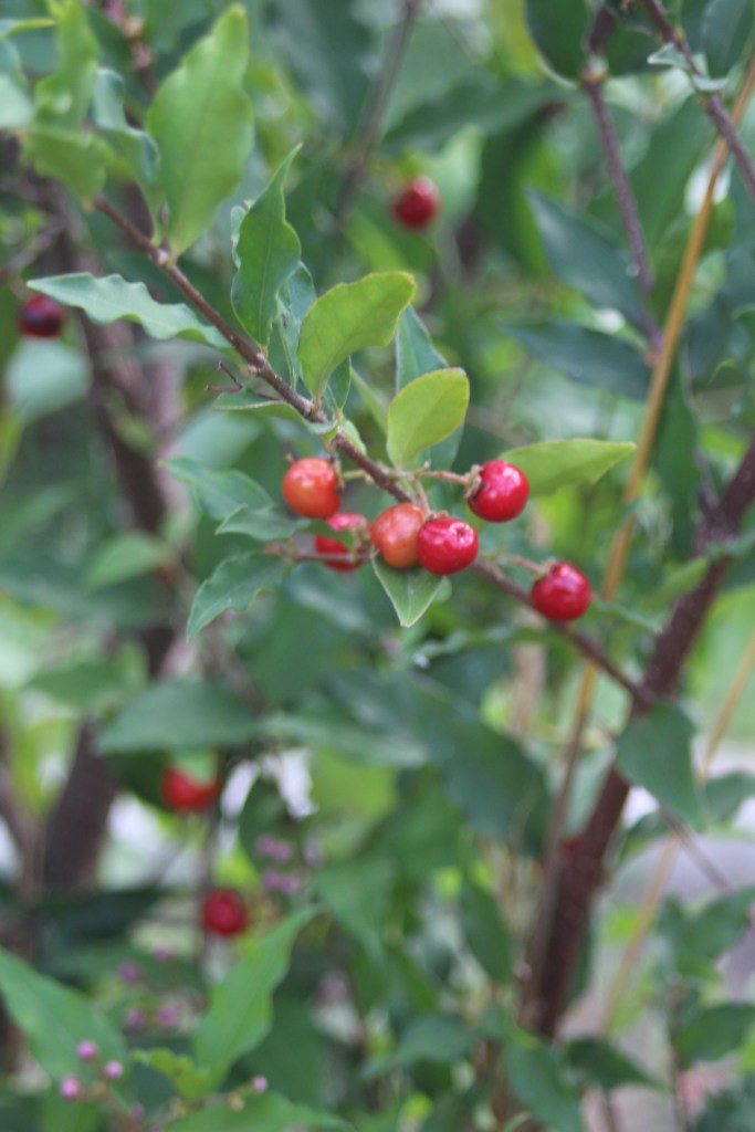 Field Identification: Dense foliage often growing in shaded areas. In full bloom is covered with the pink flowers, which are followed the very attractive red drupes.