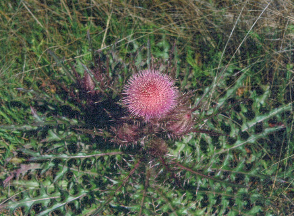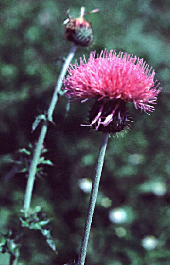 Plant Description: Biennial or perennial to 1 m high with spiny leaves 15-30 cm long. Heads solitary or few together, 4.5-6 cm high discoid. Corolla pink, lavender, purple, or white.
