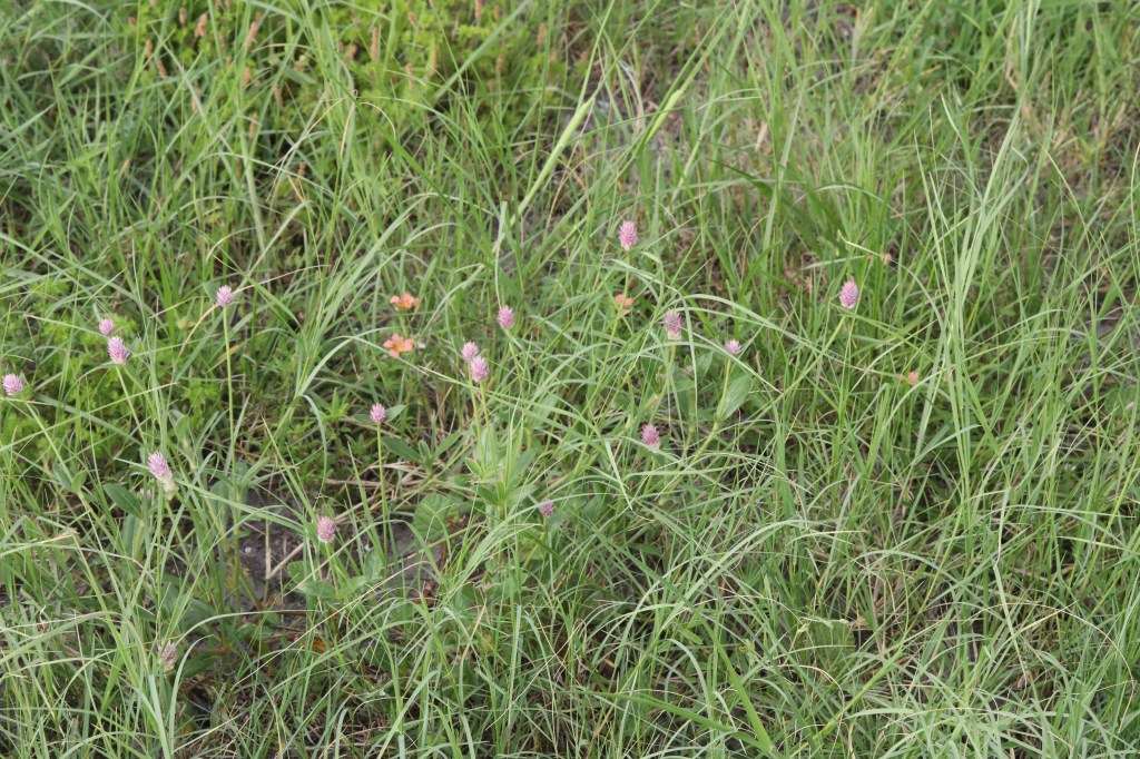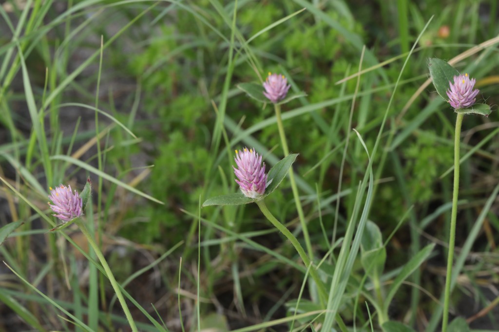 Plant Description: Perennial with prostrate or ascending hairy stems to 35 cm high or higher. Leaves obovate-oblong, spatulate, or oval, 1.5-6 cm long, opposite without petioles. Flowers perfect, in terminal or axillary heads. Heads 9-15 mm wide, white to pink or purple-rose. perianth about 5 mm long. Sepals scale-like; bracts usually purplish but may be white.