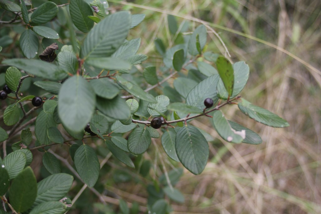 Plant Description: Evergreen shrub to 2.3 m high with lanceolate-elliptic to elliptic or oval leaves 2-8 cm long. Leaves dark green with prominent veins beneath. Barks is smooth and gray. Flower in axillary clusters, the petals 1-1.5 mm long, greenish yellow.