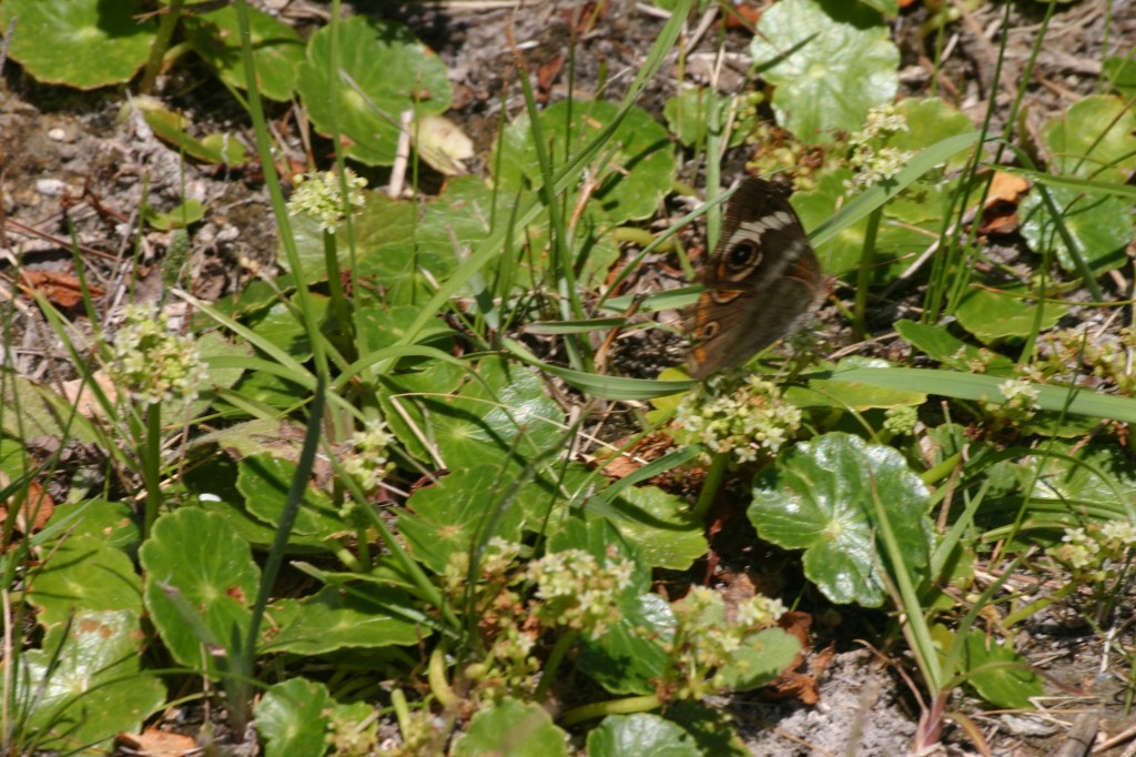 Plant Description: Perennial to 35 cm high with creeping stems, rooting at the nodes and forming mats. Leaves peltate, roundish, or broader than long, usually 3-8 cm wide, alternate. Flowers in compound umbels, petioles attached to the center of the leaf. Petals 1-1.5 mm long, whitish to pale yellow.