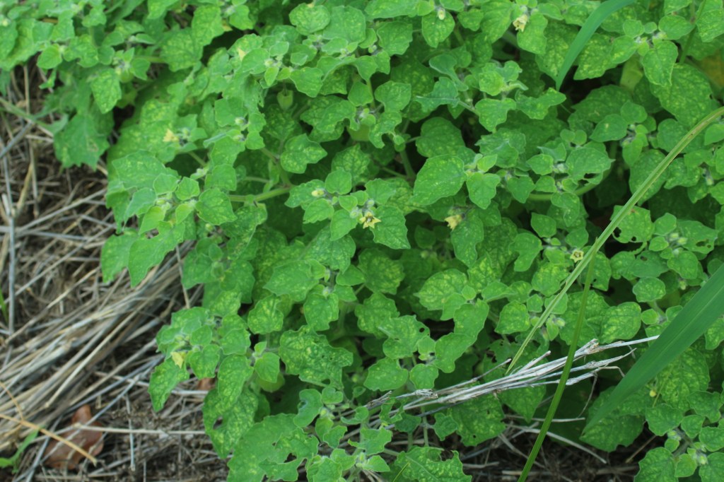 Plant Description: Annual to 50 cm or higher with ovate leaves 2-6 cm long, alternate. Flowers solitary. Stems usually lying on the ground, occasional partially erect. Corolla 8-10 mm long, greenish yellow, spotted. Ours typically has 5-8 teeth on each side of leaf.