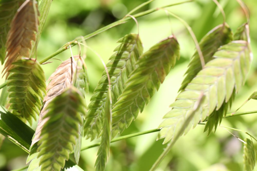 Description: A rhizomatous perennial with culms to 1.5 m tall. Leafy for 80% of its height. Spikelets with 6-25 florets, lower 1-3 sterile, fertile ones diverging at about 45 degrees. Blooms Spring and Summer. Inflorescences droop. Seeds are oak-like.