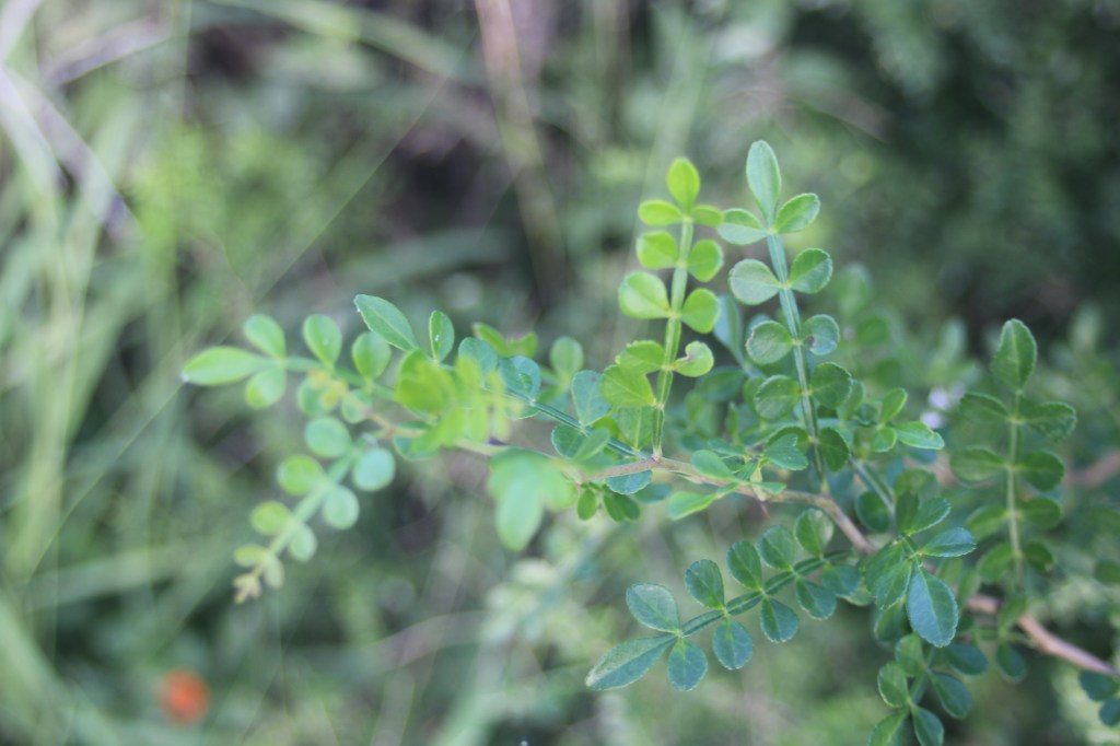 Field Identification: Curved prickles and the citrus odor of he bruised leaves, combined with the winged petioles and rachises identifies this plant.