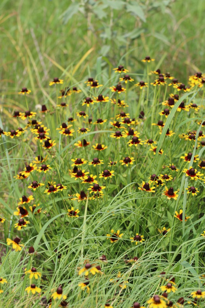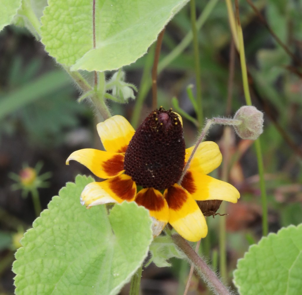 Plant Description: Perennial, 20-80 cm high, with1- to 2-pinnate divided or lobed leaves, heads solitary 2-5 cm wide, the columnar disk dark brown. Rays yellow, reddish brown, or yellow with reddish brown base. Highly variable.
