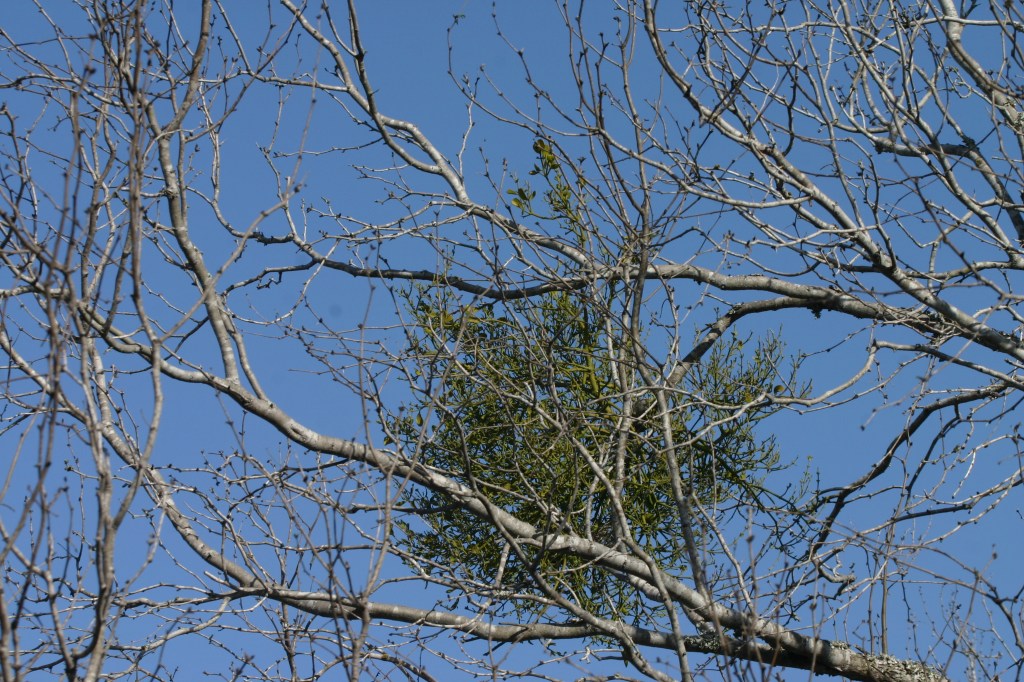Plant Trivia: Seven mistletoe species grow in Texas. Although mistletoe is green and can conduct photosynthesis, it cannot make all the complex chemicals it need, and so it extracts them from its host tree. Continued growth can kill a tree.