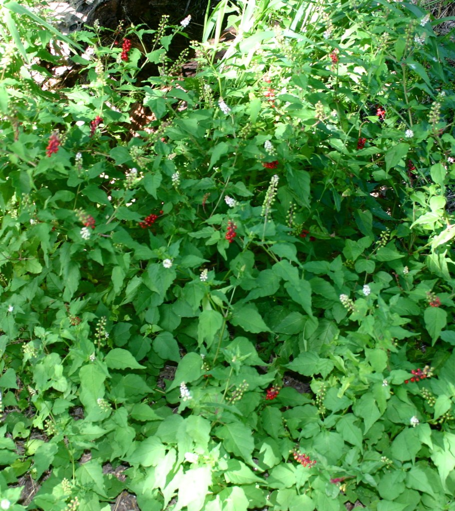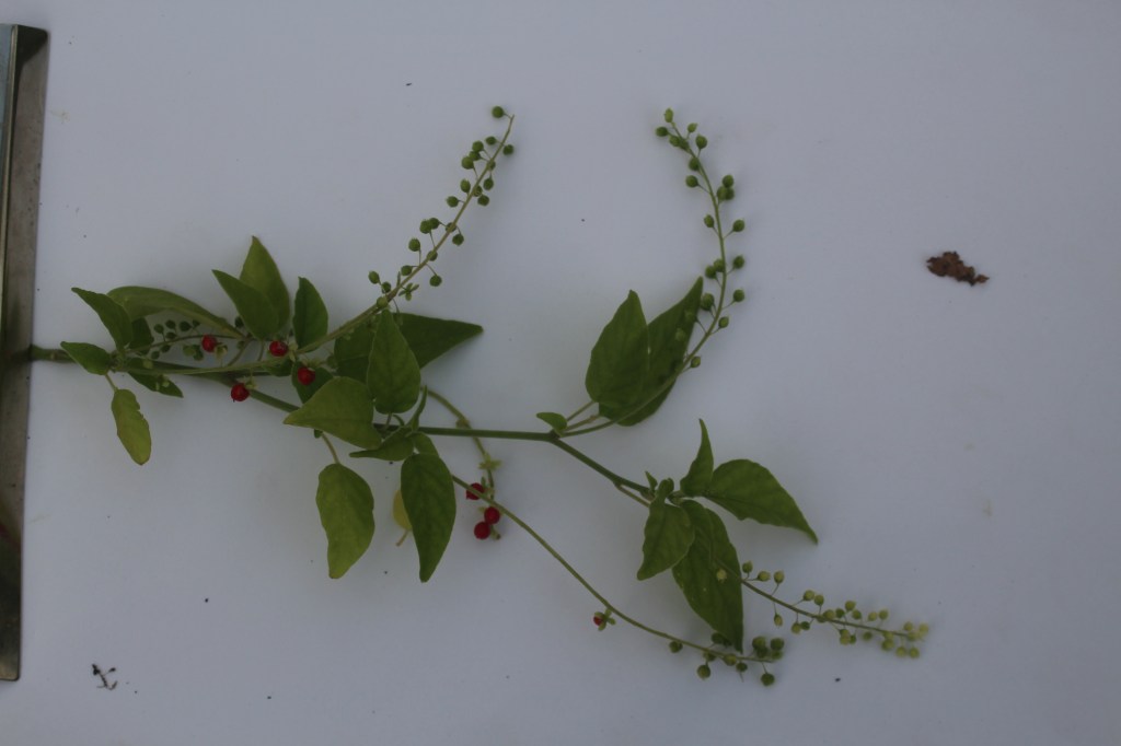 Plant Description: Perennial to 1 m or higher with ovate or triangular leaves 2-8 cm long, alternate. Flowers racemose, the tepals 2-3 mm long, white to pink or rose. inflorescence terminal or axillary. Fruits red.