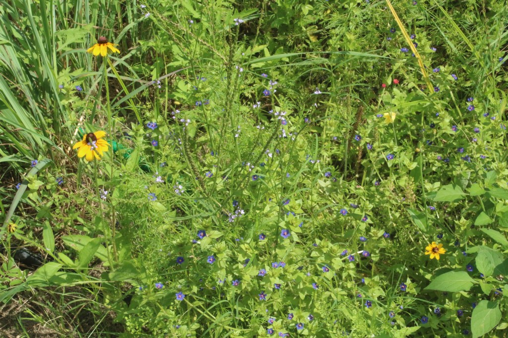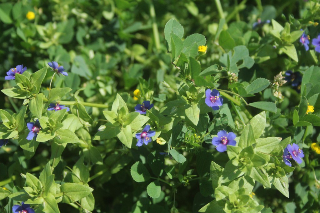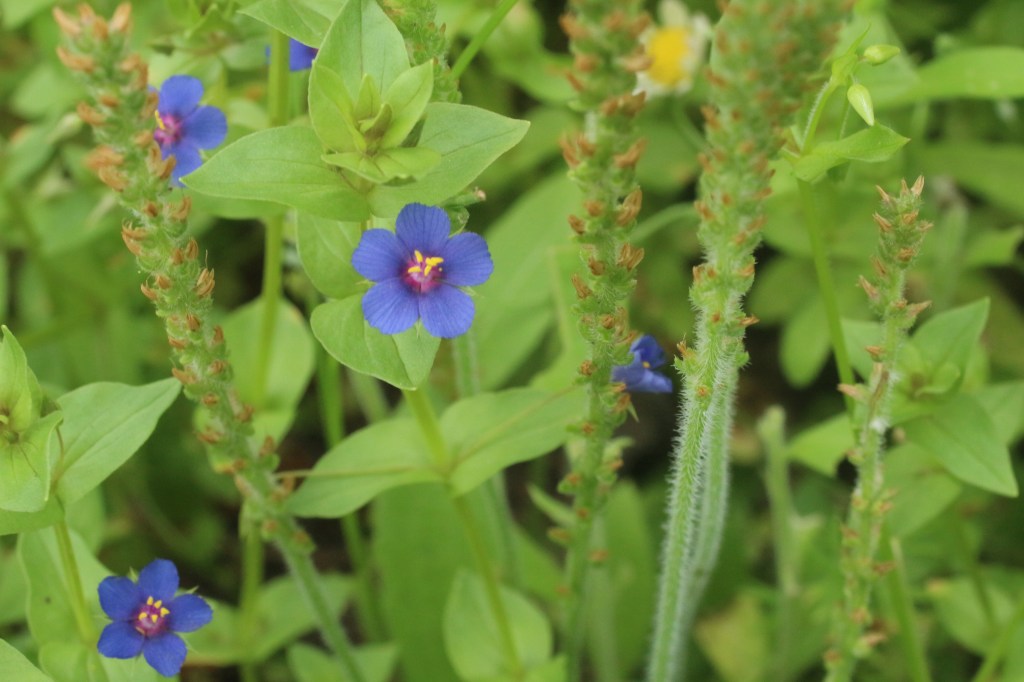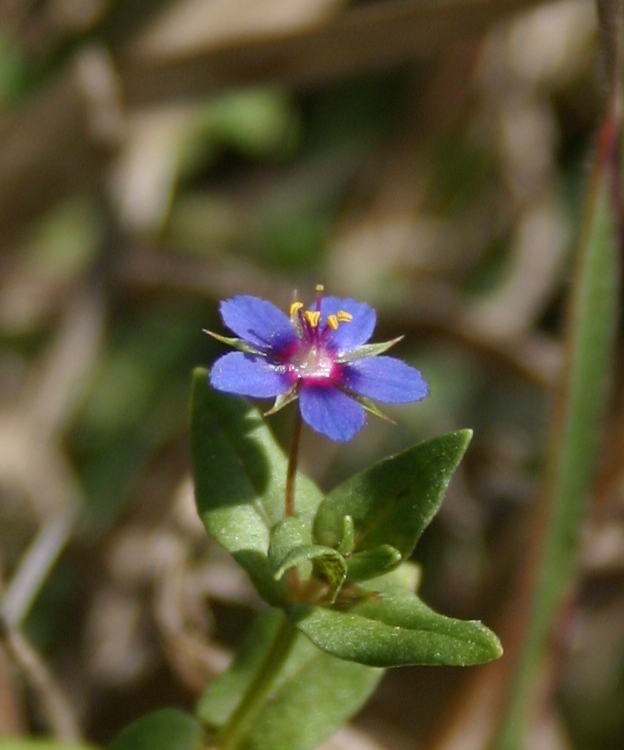 Plant Description: Annual to 15 cm or higher with erect to spreading stems. Leaves ovate or oval, mostly 1-2 cm long, opposite. Flowers solitary on slender pedicels, the corolla about 1 cm wide, salmon-orange or blue. In our area, blue is most common color.