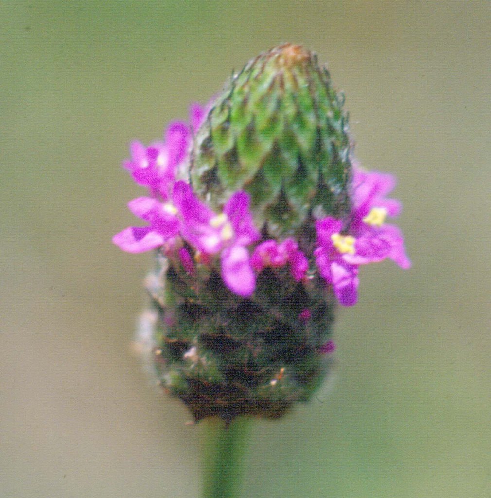 Plant Description: Annual with upright to reclining stems up to 50 cm long. Leaves pinnate, alternate, the leaflets 3-9 mm long. Flowers in terminal heads or spikes. Upper petal about 2.5 mm long, purple, strongly bilateral. Plants produce pleasant aromatic odor when handled. Glands easily see on the calyxes and the lower leaf surfaces.