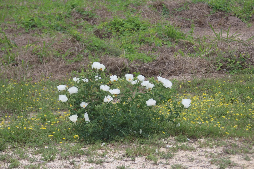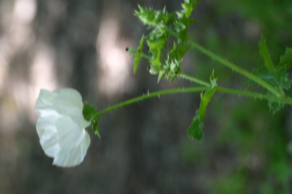 Plant Description: Annual to 1 m or higher, much like A. mexicana but with white to lavender or purple petals 3-4 cm long, radial. Yellow sap. Leaves alternate, deeply pinnately lobed, the lobes sharp-pointed. Fruit are prickly capsules up to 5 cm tall.