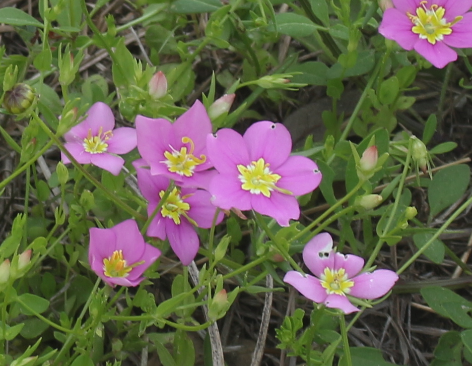 Plant Description: Annual to 15 cm high with thiskish, mostly ovate-elliptic leaves 0.7-2 cm long, opposite, simple, without petioles, not claslping. Flowers in open cymes, the corolla lobes 5-10 mm long, white to pink or rose.