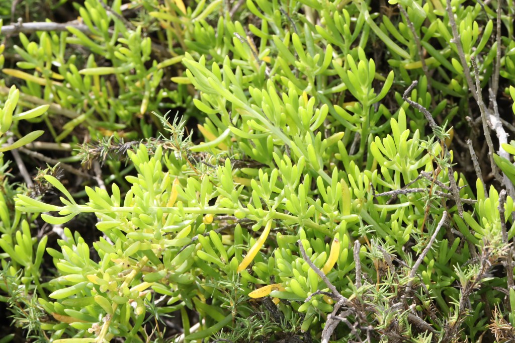 Plant Trivia: Kids who live near the marine coastal beaches know this plant as a source of salt when they eat it. It is discouraged to eat saltwort from the wild due to possible microbial contaminations from animal fecal material. However, is safe to eat when washed.