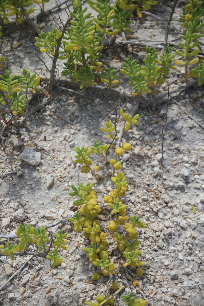 Occurrence: Found along mudflats, bay edges and other areas of high salinity. Has yellow to pale green, sometimes woody, shrublike plant 30-60 cm high. At a slightly higher it takes on a creeping aspect; at lower levels it is more erect. Where nodes touch ground, the plant will root.