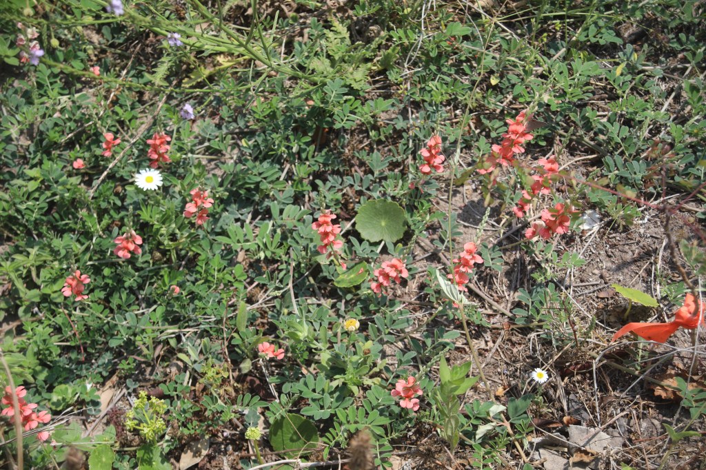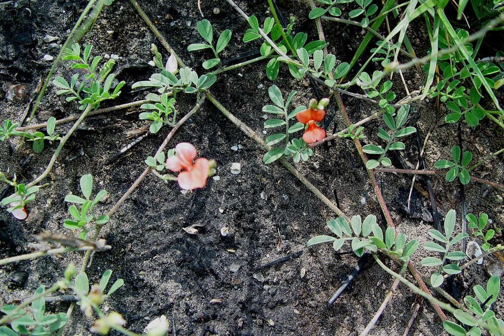 Plant Description: Perennial with prostrate, reclining, or low ascending sems to 1 m long. Leaves pinnate with grayish leaflets 8-25 mm long, alternate. Flowers in spikelike racemes, strongly bilateral, the upper petal 6-20 mm long, salmon-rose to light red.