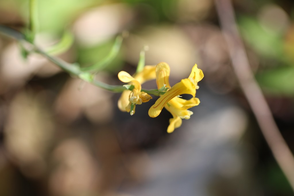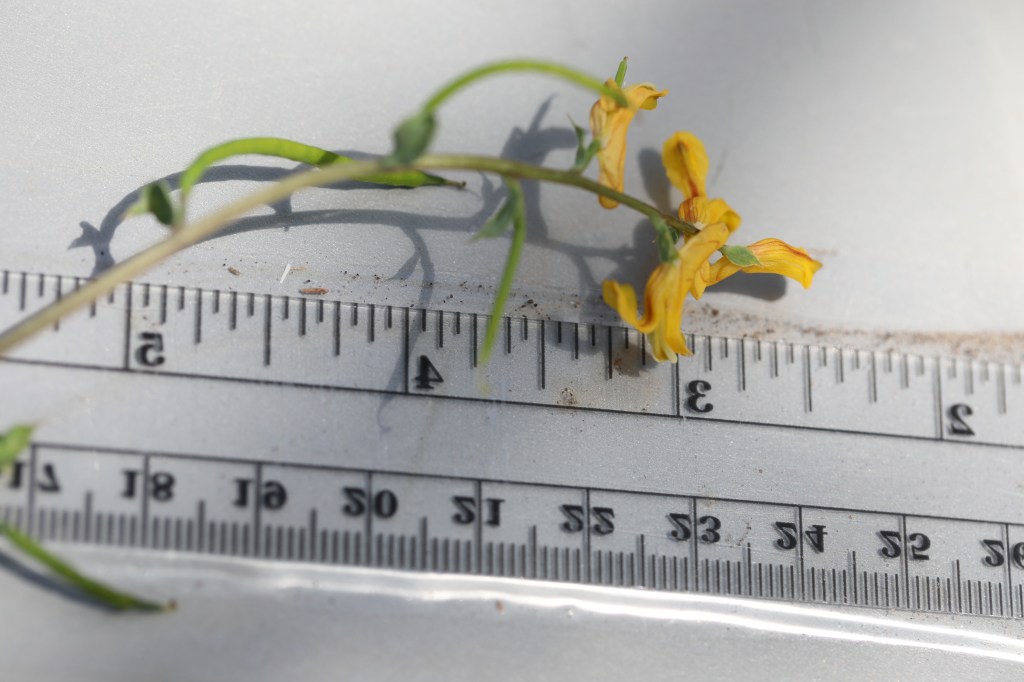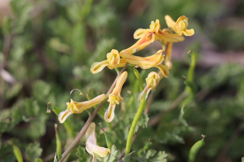Plant Description: Annual to 30 cm high with erect to reclining or trailing stems. Leaves bipinnate with dissected leaflets 5-15 mm long, alternate. Flowers in loose racemes, bilateral with a spur. Petals 1-1.5 cm long, yellow.
