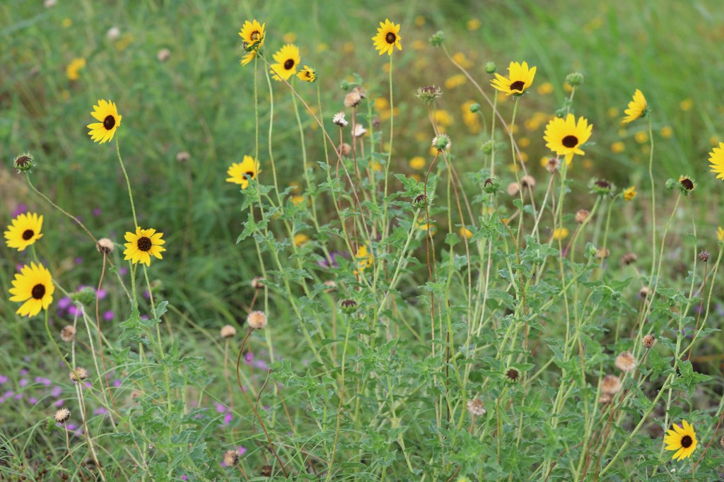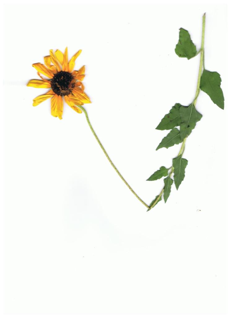 Plant Description: Annual to 2 m or higher with ovate leaves 6-30 cm long. Plant covered with stiff hairs. Leaves opposite on the lower stems alternate on the upper ones. Heads 6-10 cm wide, solitary. Disks purplish brown. Rays yellow.