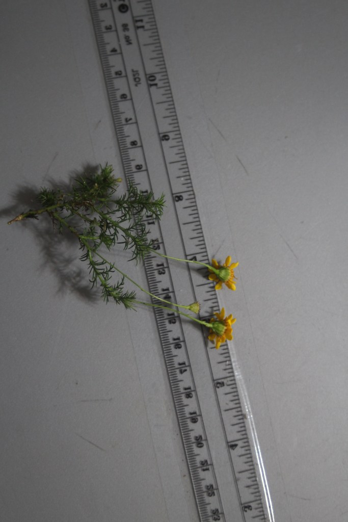 Plant Description: Annual to 20 cm high with pinnately divided leaves 1-4 cm long. Heads solitary, 1.5-2.8 cm wide, disks and ray flowers yellow to yellow-orange.