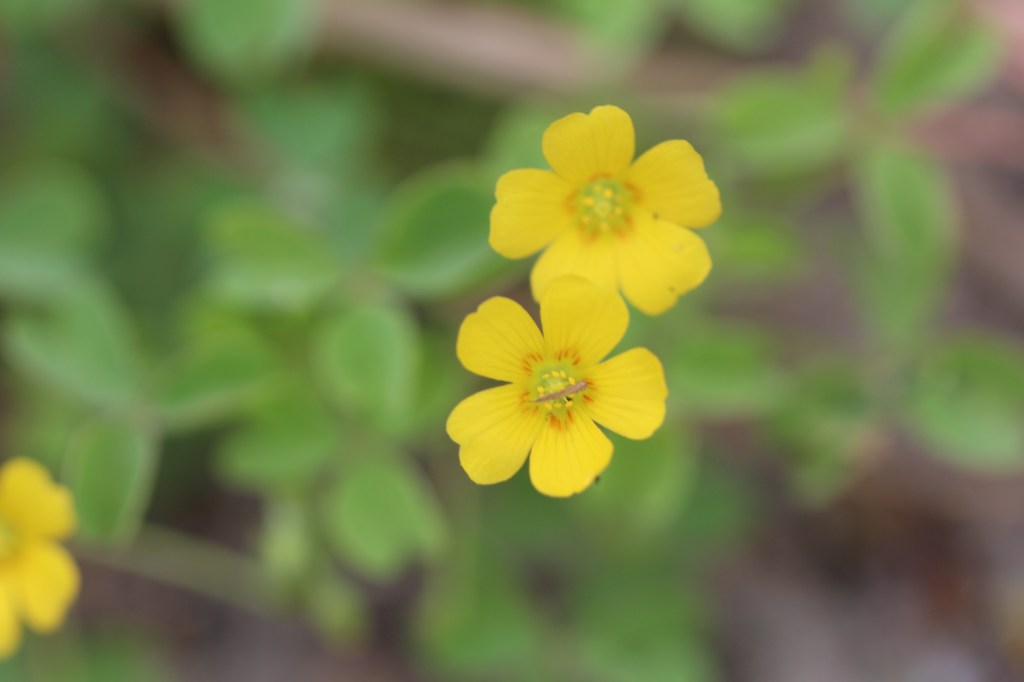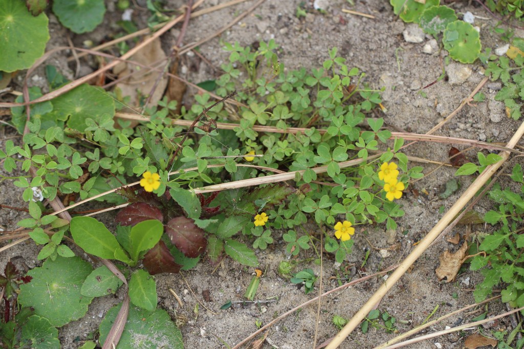 Plant Description: Low perennial with trailing or creeping stems to 15 cm or longer. Leaves 3-foliate, the obcordate leaflets 8-18 mm wide, palmate. Leaves often folded. Flowers peduncled, radial the petals 4-6 mm long, yellow. Roots at the nodes. Fruit capsules hairy, cylindrical about 2 cm long