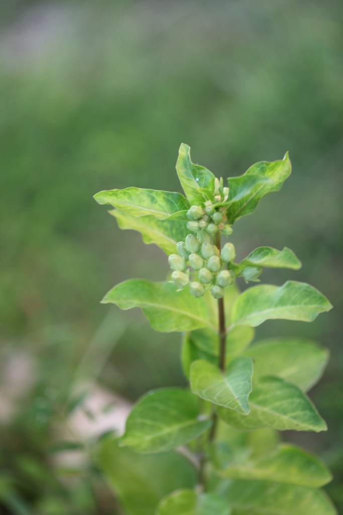 Plant Description: Perennial to 50 cm high with mostly upright stems. Leaves 4-12 cm long, ovate to oblong-lanceolate or elliptic, opposite or sub-opposite,with petioles, wavy leaf margins. Stems branched from the base, clustered from a thick rootstalk, ascending or decumbent, moderately stout. Flowers in umbels, the corolla lobes 8-10 mm long, pale green or whitish.
